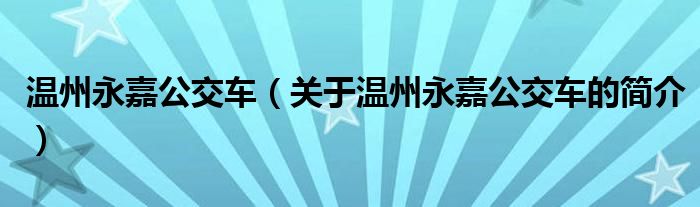 本文關于溫州永嘉公交車的簡介就講解完畢,希望對大家有所幫助。