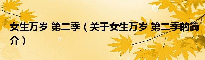大家好,女生萬歲 第二季,關(guān)于女生萬歲 第二季的簡介很多人還不知道,現(xiàn)在讓我們一起來看看吧!