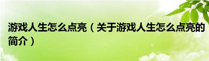 本文關(guān)于游戲人生怎么點亮的簡介就講解完畢,希望對大家有所幫助。