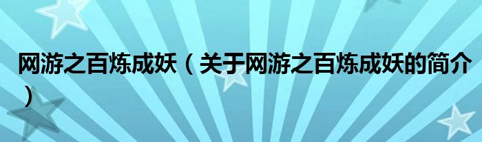 本文關于網游之百煉成妖的簡介就講解完畢,希望對大家有所幫助。