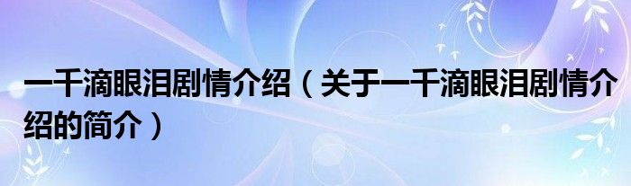 大家好,一千滴眼淚劇情介紹,關于一千滴眼淚劇情介紹的簡介很多人還不知道,現在讓我們一起來看看吧!