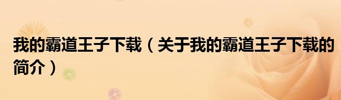 大家好,我的霸道王子下載,關于我的霸道王子下載的簡介很多人還不知道,現在讓我們一起來看看吧!