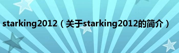 大家好,starking2012,關于starking2012的簡介很多人還不知道,現在讓我們一起來看看吧!