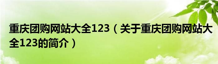 大家好,重慶團(tuán)購(gòu)網(wǎng)站大全123,關(guān)于重慶團(tuán)購(gòu)網(wǎng)站大全123的簡(jiǎn)介很多人還不知道,現(xiàn)在讓我們一起來看看吧!