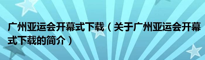 本文關于廣州亞運會開幕式下載的簡介就講解完畢,希望對大家有所幫助。
