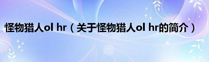 大家好,怪物獵人ol hr,關(guān)于怪物獵人ol hr的簡(jiǎn)介很多人還不知道,現(xiàn)在讓我們一起來(lái)看看吧!