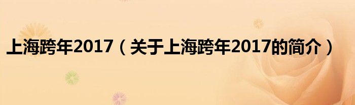 本文關(guān)于上??缒?017的簡(jiǎn)介就講解完畢,希望對(duì)大家有所幫助。