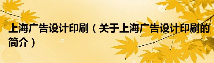 本文關于上海廣告設計印刷的簡介就講解完畢,希望對大家有所幫助。