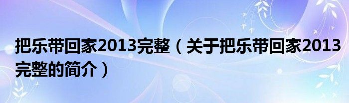 大家好,把樂帶回家2013完整,關(guān)于把樂帶回家2013完整的簡介很多人還不知道,現(xiàn)在讓我們一起來看看吧!