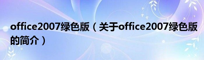 本文關(guān)于office2007綠色版的簡介就講解完畢,希望對大家有所幫助。