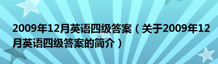 本文關(guān)于2009年12月英語四級(jí)答案的簡介就講解完畢,希望對(duì)大家有所幫助。