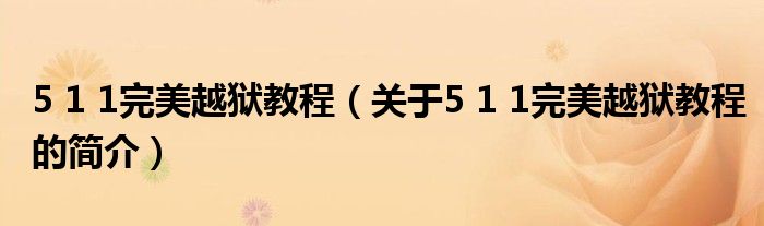 本文關于5 1 1完美越獄教程的簡介就講解完畢,希望對大家有所幫助。
