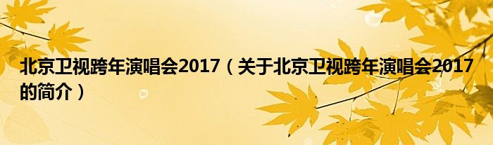 本文關(guān)于北京衛(wèi)視跨年演唱會(huì)2017的簡(jiǎn)介就講解完畢,希望對(duì)大家有所幫助。