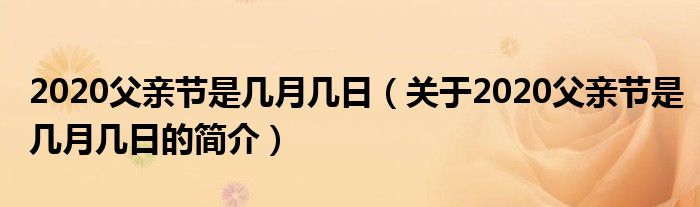 本文關(guān)于2020父親節(jié)是幾月幾日的簡(jiǎn)介就講解完畢,希望對(duì)大家有所幫助。