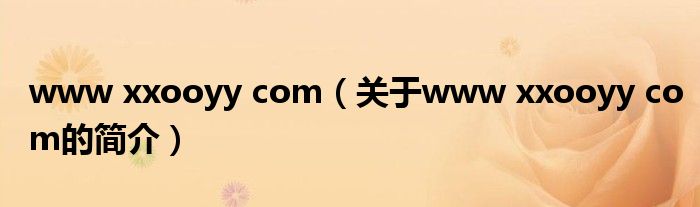 大家好,www xxooyy com,關(guān)于www xxooyy com的簡(jiǎn)介很多人還不知道,現(xiàn)在讓我們一起來看看吧!