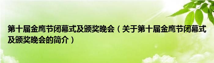 本文關于第十屆金鷹節閉幕式及頒獎晚會的簡介就講解完畢,希望對大家有所幫助。