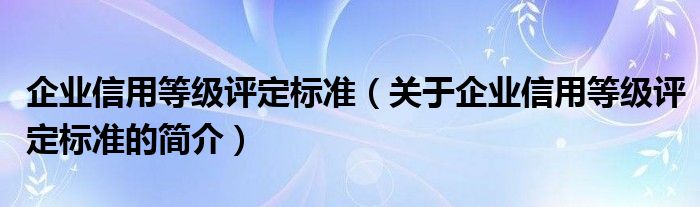 本文關于企業信用等級評定標準的簡介就講解完畢,希望對大家有所幫助。