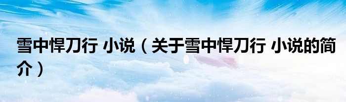 本文關于雪中悍刀行 小說的簡介就講解完畢,希望對大家有所幫助。