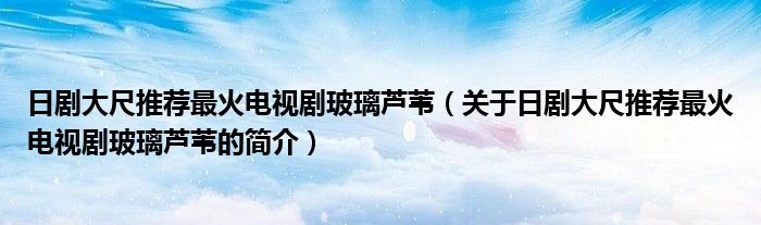 本文關(guān)于日劇大尺推薦最火電視劇玻璃蘆葦?shù)暮喗榫椭v解完畢,希望對大家有所幫助。