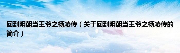 本文關于回到明朝當王爺之楊凌傳的簡介就講解完畢,希望對大家有所幫助。