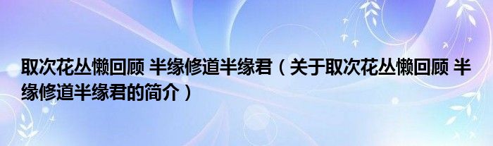 本文關(guān)于取次花叢懶回顧 半緣修道半緣君的簡介就講解完畢,希望對大家有所幫助。
