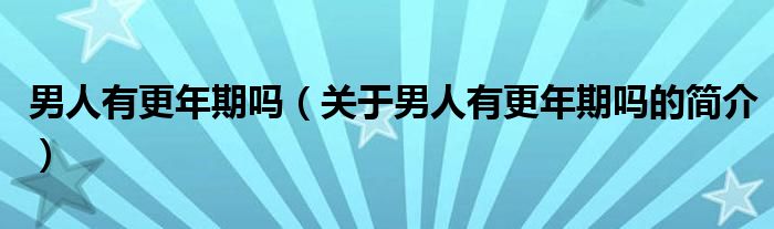 本文關于男人有更年期嗎的簡介就講解完畢,希望對大家有所幫助。