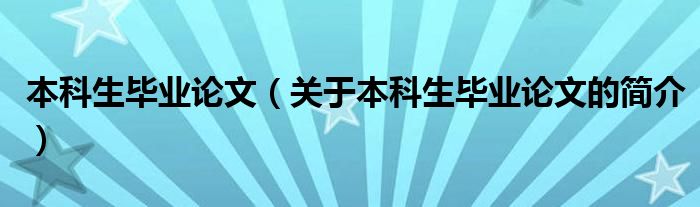 本文關(guān)于本科生畢業(yè)論文的簡(jiǎn)介就講解完畢,希望對(duì)大家有所幫助。