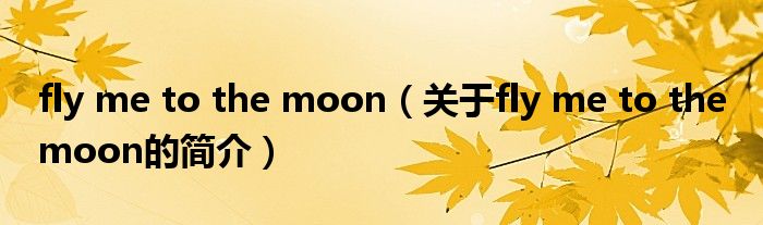 大家好,fly me to the moon,關于fly me to the moon的簡介很多人還不知道,現在讓我們一起來看看吧!