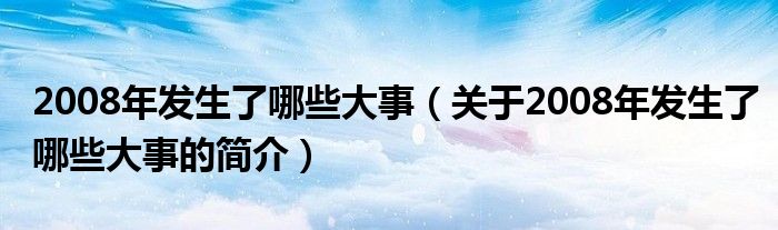 本文關于2008年發生了哪些大事的簡介就講解完畢,希望對大家有所幫助。