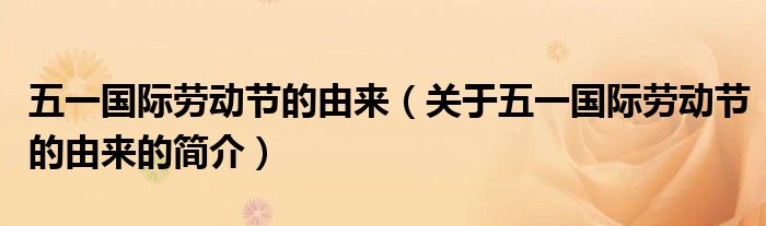 本文關于五一國際勞動節的由來的簡介就講解完畢,希望對大家有所幫助。