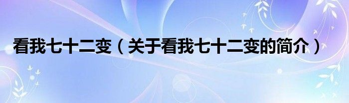 本文關于看我七十二變的簡介就講解完畢,希望對大家有所幫助。