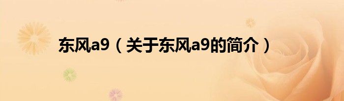 本文關于東風a9的簡介就講解完畢,希望對大家有所幫助。