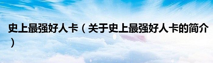 大家好,史上最強好人卡,關于史上最強好人卡的簡介很多人還不知道,現在讓我們一起來看看吧!