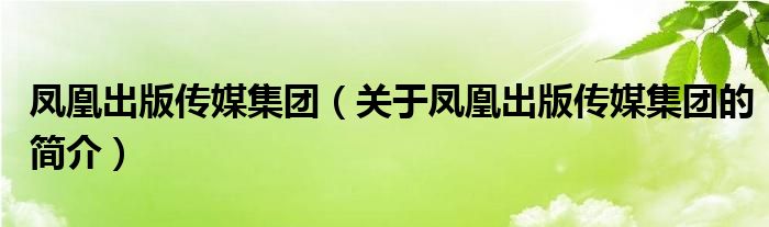 本文關于鳳凰出版傳媒集團的簡介就講解完畢,希望對大家有所幫助。