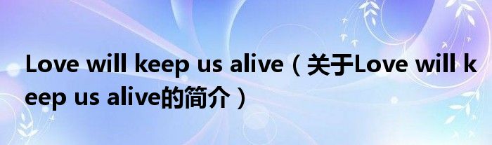 本文關于Love will keep us alive的簡介就講解完畢,希望對大家有所幫助。