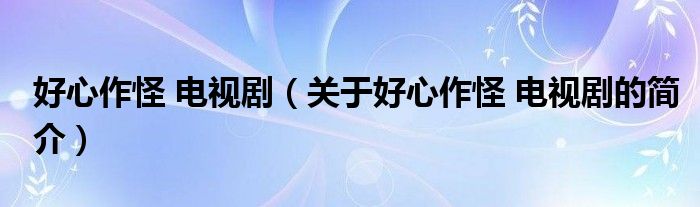 本文關(guān)于好心作怪 電視劇的簡介就講解完畢,希望對(duì)大家有所幫助。