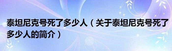 本文關于泰坦尼克號死了多少人的簡介就講解完畢,希望對大家有所幫助。