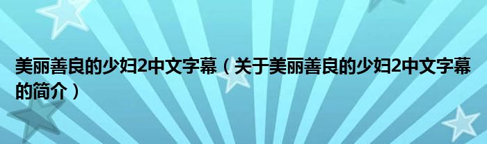 本文關于美麗善良的少婦2中文字幕的簡介就講解完畢,希望對大家有所幫助。