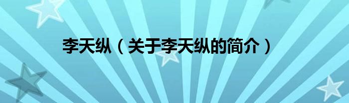 本文關于李天縱的簡介就講解完畢,希望對大家有所幫助。
