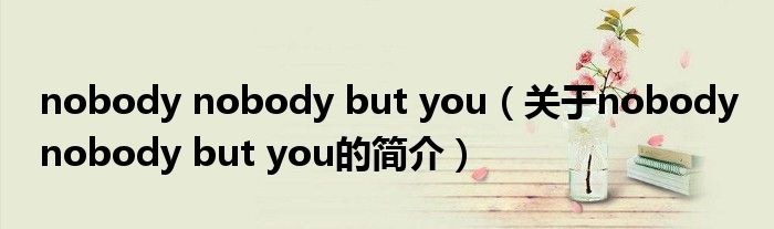 大家好,nobody nobody but you,關于nobody nobody but you的簡介很多人還不知道,現在讓我們一起來看看吧!