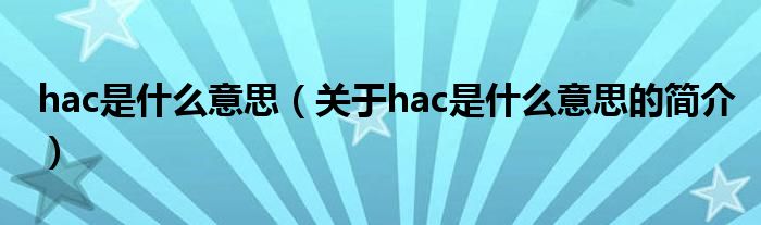 本文關于hac是什么意思的簡介就講解完畢,希望對大家有所幫助。