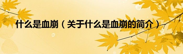 本文關于什么是血崩的簡介就講解完畢,希望對大家有所幫助。