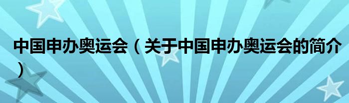 本文關于中國申辦奧運會的簡介就講解完畢,希望對大家有所幫助。