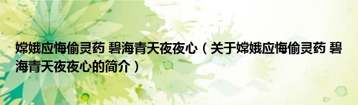 本文關于嫦娥應悔偷靈藥 碧海青天夜夜心的簡介就講解完畢,希望對大家有所幫助。
