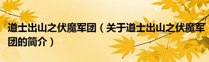 大家好,道士出山之伏魔軍團(tuán),關(guān)于道士出山之伏魔軍團(tuán)的簡介很多人還不知道,現(xiàn)在讓我們一起來看看吧!