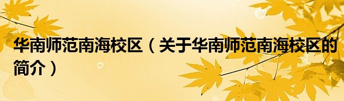 本文關于華南師范南海校區的簡介就講解完畢,希望對大家有所幫助。