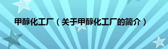 本文關(guān)于甲醇化工廠的簡介就講解完畢,希望對大家有所幫助。
