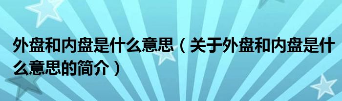 本文關(guān)于外盤和內(nèi)盤是什么意思的簡介就講解完畢,希望對大家有所幫助。