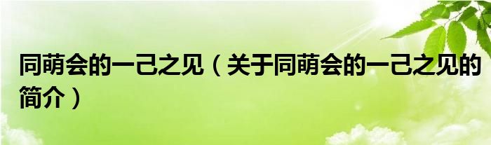 大家好,同萌會的一己之見,關于同萌會的一己之見的簡介很多人還不知道,現在讓我們一起來看看吧!