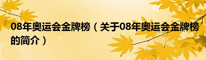 本文關于08年奧運會金牌榜的簡介就講解完畢,希望對大家有所幫助。